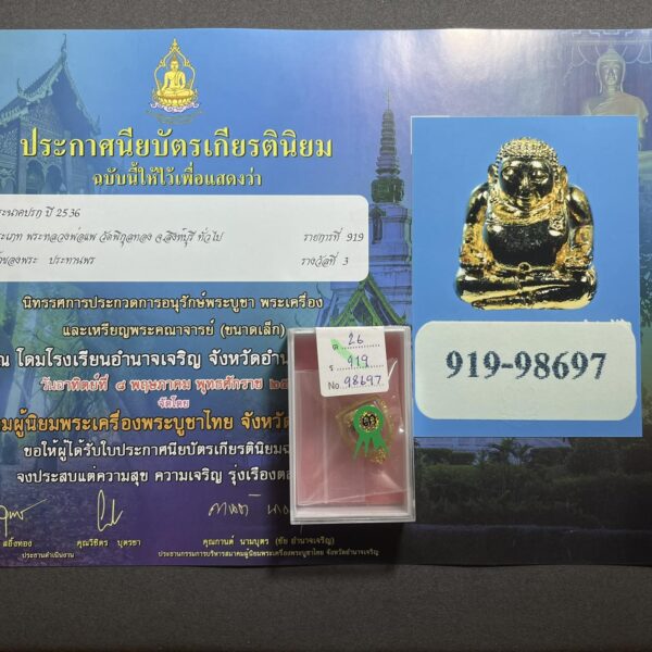 善加財,Lp Pae龍婆培,Wat Pikulthong瓦批坤通,2536年,鍍金材質,70金殼。薩瑪空比賽第三名。